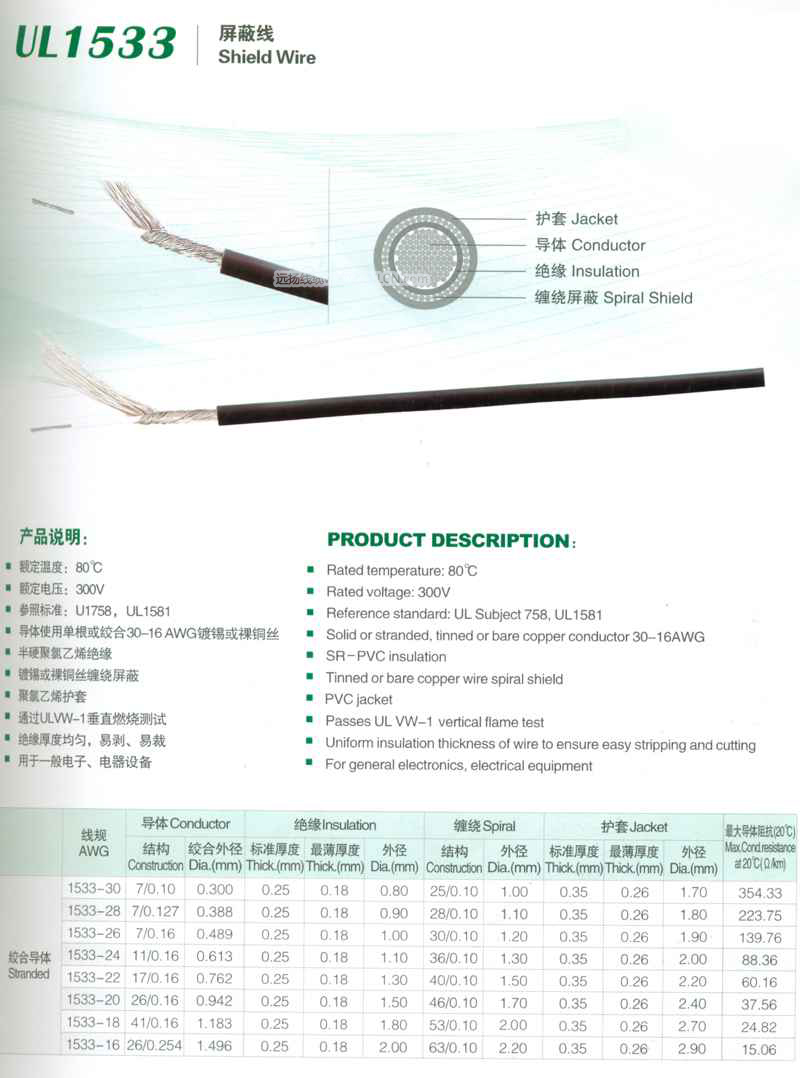 >> UL1533屏蔽线